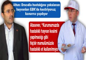Tarım İl Müdürü Mustafa Altun’un Brucella hastalığına yakalanan hayvanların EBK’da kestirilip kavurma olduğuna yönelik sözlerine EBK’dan beklenmedik tepki geldi. Et Balık Kurumu İsmail Atasever, “Kurumumuzda hastalıklı hayvan kesimi yapılmadığı gibi hiçbir mamulümüzde hastalıklı et kullanılmamaktadır” dedi.