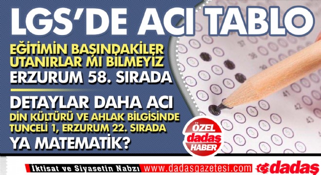 Liselere Geçiş Sistemi kapsamında yapılan merkezi sınav sonuçları, Erzurum'un eğitimdeki acı gerçeğini gözler önüne serdi. Erzurum LGS Sınavında 58. sırada yer alarak sınıfta kaldı.