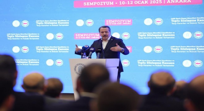 Burada bir açılış konuşması gerçekleştiren Çalışma ve Sosyal Güvenlik Bakan Yardımcısı Faruk Özçelik, çalışma hayatının bütün kazanımları içinde söylenebilir bir mücadeleler hayatı olduğunu belirterek, “Bu bağlamda sendikalar, sendikalar kazanımlarında bir mücadeleler tarihine sahnedir. Bugün burada yapılacak olan, iki gün sürecek olan bu sempozyum da, ben inanıyorum ki 4688 sayıda, sendikalar ve toplu sözleşmeler kanunuyla alakalı olarak, bir iyi bir masaya yatırma ameliyatı, ameliyatı göreceğine inanıyorum” açıklamasında bulundu.