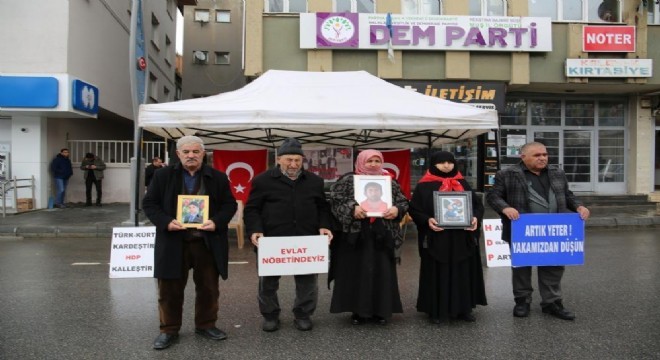 Muş’ta çocuklarını terör örgütü PKK’nın pençesinden kurtarmak isteyen ailelerin DEM Parti il binası önündeki eylemi devam ediyor. Aileler, çocuklarının en kısa sürede güvenli bir şekilde evlerine dönmesini beklerken, toplumun da bu konuda destek olmasını istedi. Çocuklarına kavuşmak ümidiyle her hafta çarşamba günü DEM Parti il binası önünde bir araya gelen aileler, "Evlat nöbetindeyiz", "Anneler direniyor" ve "Artık yeter yakamızdan düşün" yazılı pankartlar açtı. Ellerinden fotoğraflarını düşürmedikleri çocuklarına "teslim ol" çağrısında bulunan anne ve babalar, eylemin yapıldığı yoldan geçen ve yüksek sesle müzik açan DEM Parti’nin seçim aracına tepki gösterdi.