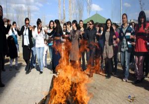Nevruz ateşini kendi elleriyle yakan Kız Teknik Meslek Lisesi Müdüresi Bahtinur Akgün, öğrencileriyle halay çekip, coşkularına ortak oldu.