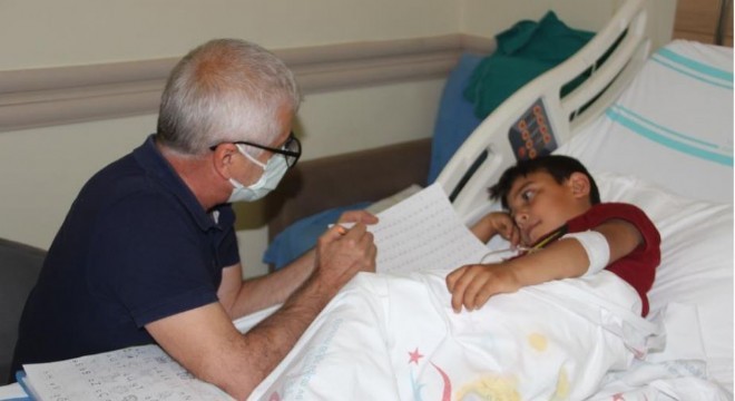 Konuyla ilgili açıklamalarda bulunan sınıf öğretmeni Halil Elitok hastaneyle okul arasında bir bağ kurduklarını ifade ederek, “Hastaneye tedavi olmak için gelen çocuklarımıza burada kaldıkları sürece yatak başında eğitim vermeye çalışıyoruz. İlkokul öğrencilerimize özellikle müfredat eğitimi veriyoruz. Ayrıca kitap okuma alışkanlıkları kazanmalarını sağlıyoruz. Hepsini bir araya toplamadan bireysel eğitim veriyoruz. Burada verdiğimiz eğitimle çocukların eğitimlerinden geri kalmalarını engelliyoruz. Mesela Oğuzhan hastaneye gelir gelmez sistem üzerinden seviyesini tespit ettim ve eğitimine başladık. Şu an okuma yazma eğitimi veriyoruz. Günlük 2 saatten az olmamak şartıyla çalışıyoruz” dedi.