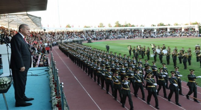 Erdoğan, “Türkiye artık darbeci zihniyetin 70 yıl boyunca örselediği, askeri eğitim ve yönetim sistemini tamamen terk etmiştir. Yeni askeri eğitim ve öğretim sistemimiz ile milli iradenin üstünlüğü ilkesine sıkı sıkıya bağlı, sadece millete hizmet eden, sadece devletine ve onun meşru idarecilerine tabii bir Türk Silahlı Kuvvetlerine hamdolsun sahip olduk” dedi.