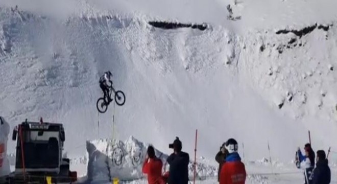 Türkiye’nin gözde kayak merkezlerinden Palandöken bu kez bisiklet tutkunlarına ev sahipliği yaptı. Zirveden bisikletleriyle iniş yapan adrenalin tutkunları yürekleri ağza getirdi.