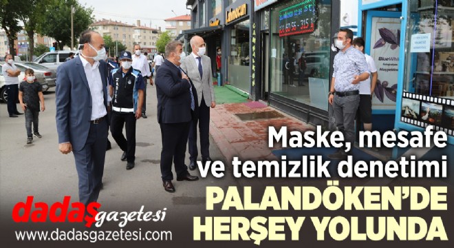 İçişleri Bakanlığı'nın genelgesi doğrultusunda, Palandöken’de temizlik, maske ve fiziki mesafe denetimi yapıldı. Palandöken Belediye Başkanı Muhammet Sunar, İlçe Kaymakamı Önder Coşğun ve İlçe Sağlık Müdürü Abdullah Baysal’ın katıldığı denetimde, ilçe esnafının ve sakinlerinin kurallara uyduğu gözlemlendi.