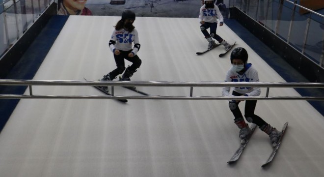 Sivas’ta Türkiye’nin tek kayak simülasyon merkezi kuraklık nedeniyle henüz kar yağmamasına rağmen kayak severlere ve sporculara kayak yapma fırsatı sağlıyor.