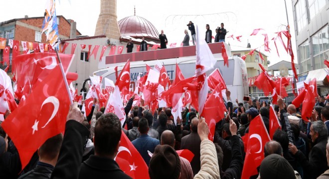 Mabetlerimize namahrem eli değdirtmediler. Şehadetleriyle dinimizin temeli olan ezanlarımızın susturulmasına müsaade etmediler. İmanlarıyla, cesaretleriyle, fedakârlıklarıyla, Allah’ın inayet ve yardımıyla büyük bir zafer kazandılar. İşte şimdi şanlı ecdadımıza bir zafer daha kazandırma sırası bizde Nasıl ki insanların fert olarak imtihanları söz konusuysa milletlerin de imtihanı vardır. Millet olarak biz de tarihin hemen her döneminde zorlu imtihanlardan geçtik. Varlığımıza, inancımıza, mukaddesatımıza, huzurumuza kast edildi. Aynı secdede Rahman’a kul olmakla, aynı kıblede istikameti bulmakla, birbirimize verdiğimiz değerle, muhabbetimizle, birlik ve beraberlik ruhuyla bütün zorlukların üstesinden geldik. Din, ezan, bayrak ve mukaddesat uğrunda Doğusuyla, Batısıyla, Kuzeyiyle, Güneyiyle hep birlikte aynı safta mücadele ettik. Binlerce evladımızı şehit vererek bu toprakları hep birlikte vatan kıldık. Bugün millet ve yaşadığımız coğrafya olarak yine bir imtihandan geçiyoruz. Dünya’nın bütün süper güçleri ve yedi düvel ‘Hayır’ı, aziz milletimiz de ‘Evet’i savunuyor. İnşallah 16 Nisan’da ikinci diriliş ve demokrasi destanımızı aziz milletimizle hep birlikte yazacağız.”