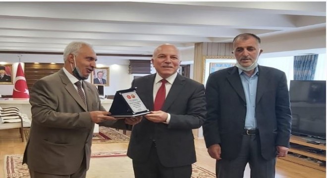 Büyükşehir Belediye Başkanı Mehmet Sekmen'i ziyaret eden Türkiye Emekliler Derneği Erzurum Şube Başkanı Ahmet Degen, Başkan Sekmen'e hizmetlerinden ötürü teşekkür plaketi verdi.