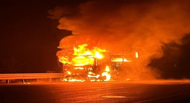 Alınan bilgiye göre, gece 00.30 sıralarında Özdemir mevkisinde Erzurum'dan Aşkale'ye seyir halindeki tırda bilinmeyen bir sebeple yangın çıktı. Alev ve dumanların yükseldiğini fark eden sürücü aracını yol kenarına çekti. Alevler dorseye sıçrarken ihbarla olay yerine gelen itfaiye ekipleri yangına müdahale etti. Ekiplerin uzun uğraşları sonucu söndürülen yangında araç kullanılmaz hale geldi.