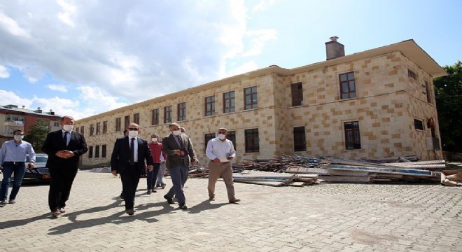 Vali Cüneyt Epcim, restorasyon çalışmalarında son aşamaya gelinen tarihi Bayburt Lisesi’nde incelemelerde bulundu.