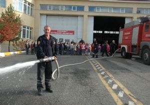 İtfaiye ekipleri daha sonra öğrenciler yangına nasıl müdahale edileceğini anlattı ve uygulama olarak su sıkmayı gösterdi.