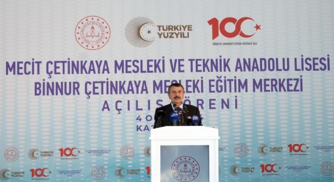 “Okulları dinamik hale getirelim, neye ihtiyaç varsa ona göre öğrencilerimizi yetiştirelim diye meslek liselerimizi böyle bir formata kavuşturuyoruz” ifadelerine yer veren Tekin, “Meslek liselerindeki çocuklarımız mesleki eğitimle ilgili uygulama imkanı bulamıyorlardı. Orada da uygulama ile ilgili kolaylıklar getirdik. Uygulama için herhangi bir iş yerine gittikleri zaman işveren onu ilave bir maliyet olarak gördüğü için staj ya da iş yeri eğitimini vermek istemiyordu. Onu da asgari ücretin yüzde 30’u ve yüzde 50'si kadar ücretini devlet olarak kamu bütçesinden vermeye başladık. Yani çocuk okuldayken staja gittiğinde unvanına göre ücret alıyor. Bu da yetmedi. Dedik ki giden çocuklarımızın Allah korusun, başına bir iş gelebilir, bir hastalıkla karşı karşıya kalabilir. Bir devrim niteliğinde bir şey daha yaptık. Meslek lisesindeki çocuklarımızın iş yeri eğitimlerinde meslek hastalıkları ve iş yeri kazalarına, sigorta getirdik. Yani çocuklarımızı bu anlamda da sigortaladık. Bir de bugün buranın açılışını yapacağımız mesleki eğitim merkezimiz. Burası çok kritik. Eskiden çıraklık eğitimi alan kişilere ya çıraklık ya akademik eğitim diploması ile karşı karşıya bırakıyorduk. Meslek eğitim merkezleri sayesinde çocuklarımız hem mesleki eğitimlerini alacaklar hem de orta öğretim diplomasına kavuşmuş olacaklar. Bunların her birisi mesleki eğitimde attığımız devasa adımlar” şeklinde konuştu.