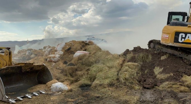 Tekman ilçesinde çıkan yangında 12 bin balya ot kül oldu.