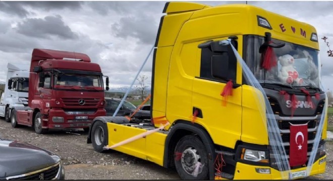 Şoför arkadaşlarının da yalnız bırakmadığı Muhammet Kanar, tırlardan oluşan konvoyla gelin alma geleneğini yerine getirdi. Çift, ardından düğün salonunun yolunu tuttu. Güzergah üzerinde gelin arabası olarak süslenen tırı görenler ise şaşkınlıklarını gizleyemedi.
