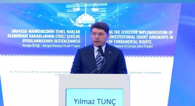 Tunç ayrıca adli yargılanmayla ilgili önemli oturumlar gerçekleştirdiklerini aktardı. Adaletin toplumsal barışın teminatı olduğundan bahseden Bakan Tunç, "Adalet, insan onurunu korumak için, insan haklarını korumak için vardır. Adaletin tecellisi için de hukuk devleti, şarttır hukuk devleti içinde kararsız ve bağımsız yargı olmazsa olmaz şarttır. Tabii tarafsız ve bağımsız yargının uyacağı en önemli kural da adil yargılanma hakkını en geniş anlamıyla tesis ederek kararlarını vermektir. Bu şekilde gerçekleşir ve bu şekilde insan onuru ve insan hakları korunur. Adil yargılanma hakkının temeli, doğal adalet ilkesine dayanır. Doğal adalet ilkesi, insanların doğuştan gelen haklarının korunması ve adil bir şekilde yargılanması üzerine kurulmuştur. Bu ilke tarafsızlık, dinlenilme hakkı ve taraflara eşit muamele gibi temel prensipleri içerir. Adil yargılanma hakkı ayrıca insan onurunu ve temel hakları korunması gerektiği fikrindendir. İnsanların onurlu bir şekilde yaşama hakkı muamele görmelerini gerektirir. Bu nedenle yargı süreçlerinde her bireyin saygı görmesi zamanlarının korunması esastır" diye konuşmasını noktaladı.
