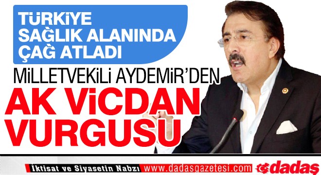 Ak Parti dönemiyle sağlıkta, dünyada da geniş yankı ve ilgi bulan bir değişim ve dönüşümün yaşandığını bildiren Milletvekili Aydemir, ‘Şimdi, ak bir vicdan açığa çıktı. Ne zaman? AK Parti'nin iktidarıyla beraber. İşte, o zaman sağlık sektöründe ciddi bir atılım yaşandı, hâlen daha da devam ediyor, inşallah Sayın Bakanımızın riyasetinde bu hâl buradan sonra da çok daha iyi noktalara gidecek çünkü biz dua alıyoruz arkadaşlar, bunu her vesile söylüyorum. Milletimiz kendisine yönelen muhabbete, şefkate duayla karşılık veriyor ve bu da indi Allah'ta bir karşılık buluyor. O yüzden de geldiğimiz noktada enva’i türden iblisî oyunlara rağmen ayaktayız ve çok daha iyi noktalara doğru da yürüyoruz. ‘ dedi