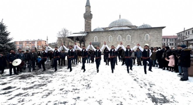 Davul zurna eşliğinde yapılan Erzurum bar ekibi gösterisine vatandaşlar yoğun ilgi gösterdi.