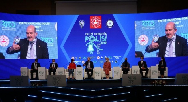 Bakan Soylu, "Uyuşturucu bağımlılarının üzerinde yaptığımız son araştırmada bağımlıların yüzde 89,8'inin annesinin ev hanımı olduğu ortaya çıktı. Madde bağımlılarının uyuşturucu kullandığı yerler sıralamasında ise ilk sıradaki cevap yüzde 47,5 ile yani 2 kişide 1 kişinin ilk sırada 'kendi evim' çıktı. Yani her şey buralarda değil, bizim gözümüzün önünde oluyor. Onun için diyoruz ki 'En İyi Narkotik Polisi; Anne'lerimiz. Kıymetli anneler her şey sizin elinizde. Çocuklarımızı korumak, onları bu zehirden uzak tutmak, bu mücadeleyi birlikte vermek zorundayız. Bizler dışarıda onlara bu zehrin ulaşmasını engellemeye çalışırken sizlerin de içeride çocuklarınızın davranışlarını izlemenizi, bizimle iletişim halinde olmanızı ve bu mücadelede bize kılavuzluk etmenizi istiyoruz. Sizlerin feraseti ve evlatlarınıza olan sonsuz sevginiz ile bu mücadeleyi başaracağımıza inanıyoruz. Şimdi haydi hep birlikte iş başına" şeklinde konuştu.