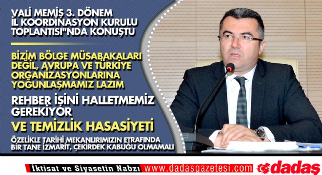 Kentteki kurum müdürleri ve ilçe kaymakamlarıyla Valilik'te düzenlenen "3. Dönem İl Koordinasyon Kurulu Toplantısı"nda konuşan Vali Memiş, Erzurum'un kamu kaynaklarından yeterli payı alan bir kent olduğunu söyledi.
