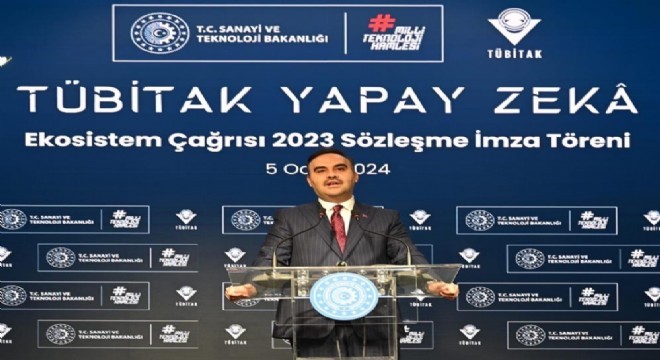 Kocaeli'de TÜBİTAK Marmara Teknokent'te (MARTEK) Yapay Zeka Ekosistem Çağrısı İmza Töreni'ne katılan Sanayi ve Teknoloji Bakanı Mehmet Fatih Kacır, "İlk çağrımızda, 4 tematik alandaki 10 konsorsiyuma toplam 18 milyon TL destek sağladık. Bugün de ikinci çağrımız çerçevesinde akıllı üretim sistemlerinden, akıllı tarım, gıda ve hayvancılığa, iklim değişikliği ve sürdürebilirlikten, akıllı eğitim ve finans teknolojilerine kadar 5 tematik alanda 17 konsorsiyum projesine 55 milyon TL'nin üzerinde bütçe ile destek sağlayacağız" dedi.