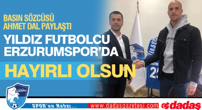 Erzurumspor basın sözcüsü Ahmet Dal, Kulüp Başkanı Hüseyin Üneş’le yıldız futbolcunun fotoğrafını sosyal medya hesabından paylaşarak, futbolcunun Erzurumspor’a hayırlı olması temennisinde bulundu.