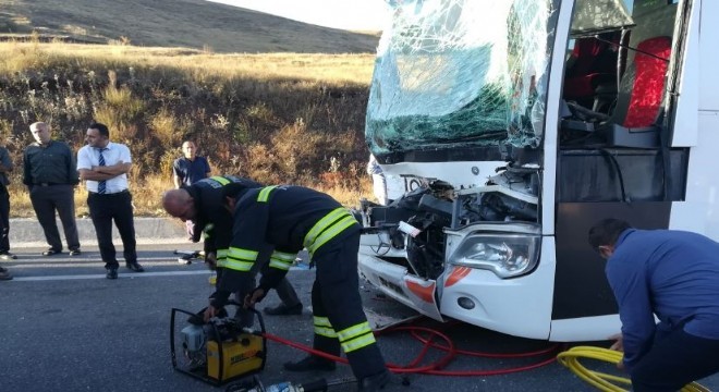 Erzurum-Aşkale karayolunda yolcu otobüsü ile tırın çarpışması sonucu meydana gelen trafik kazasında 4’ü ağır 17 kişi yaralandı.