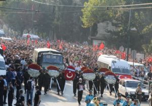 Törene katılan Bursalılar ise trafiğe kapatılan Atatürk Caddesi'nde, "Şehitler Ölmez, Vatan Bölünmez", "Meclis'te PKK İstemiyoruz", "Ne Mutlu Türk'üm Diyene" sloganları attılar. .