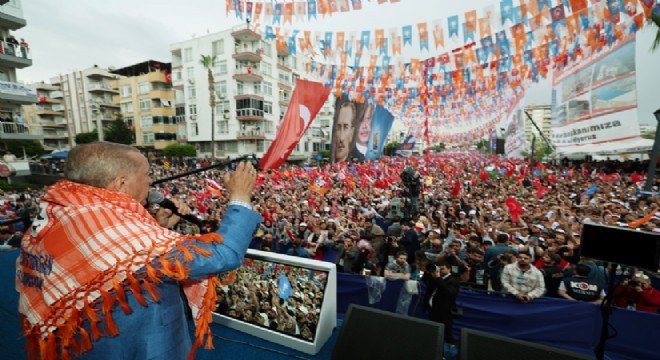 Cumhurbaşkanı Erdoğan, Mersin mitinginde yaptığı konuşmada, “Mersin’in ülkemizin tarımında, sanayisinde, ticaretinde ayrı bir yeri var. Hepsinden önemlisi Mersin’in ülkemizin insan zenginliğinin tüm renklerini bünyesinde barındıran özelliğiyle, kalplerimizde ayrı bir yeri var” dedi.