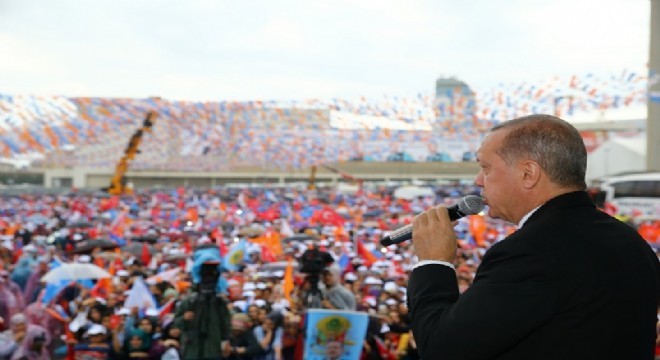 İstanbul'da Belediye Başkanlığı yaptığı dönemleri de hatırlatan Erdoğan, o dönemde de belediyeyi CHP'den teslim aldığını Türkiye’ye hizmet etmek, eserler, projeler hayata geçirmek, öyle her faniye nasip olmaz. Kimi beceriksizliği, kimi ahlaksızlığından gibi sebeplerden batırıp gider, Tıpkı CHP'nin başındaki şahıs gibi. Bir de İstanbul’u CHP’den teslim aldım. Ben bilirim, o dönemdeki susuzluk, hava kirliliği, çöp dağlarını. CHP zihniyetinin bu ülkede ne zaman iş başına gelse, yoklukla, yoksullukla, gerilim ile yerle yeksan ettiğini milletimiz çok iyi hatırlıyor. Bizim eserlerimize ya çamur atıyor, ya da sahip çıkmaya çalışıyorlar" diye konuştu.
