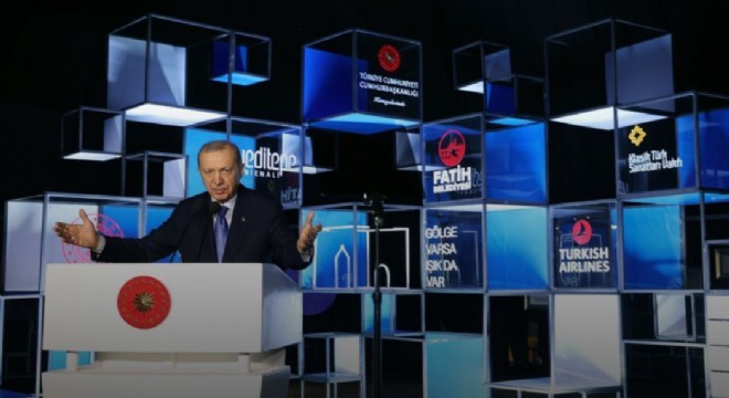 Erdoğan, 'Biz çiniyle konuşan, hatla anlatan, ebruyla dua eden, tezhiple sabrı resmeden bir milletiz. Bizim sanat anlayışımızda kibir ve özellikle de gösteriş asla yoktur. ' dedi.
