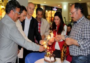 Pastanın üzerindeki mumları üfleyen Sabuncuoğlu, mutlu olduğunu belirtti.