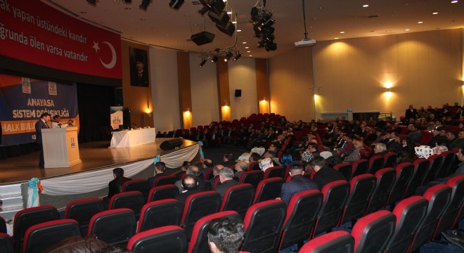 Erzurum Sivil Toplum Platformu (ESTP) tarafından organize edilen "Anayasa Sistem Değişikliği Halk Buluşması" toplantısı, Necip Fazıl Kısakürek Kültür Merkezi'nde gerçekleşti