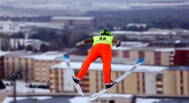 Erzurum’da Kayakla Atlama Kulelerinde düzenlenen Kayakla Atlama Kıtalararası Kupası'na katılan sporcular gökyüzünü renklendirdi.