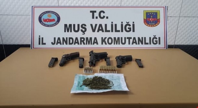 Muş Valiliğinden yapılan açıklama , “İl Jandarma Komutanlığı ekiplerince, ‘6136 Sayılı Ateşli Silahlar ve Bıçaklar ile Diğer Aletler Hakkında Kanunun 12’inci maddesinde tanımlanan silah ve mühimmat kaçakçılığı” suçunu işleyen şüphelilere yönelik çalışma yürütüldü. Yürütülen çalışmalar la ilgili 23 Ekim 2018 günü, eş zamanlı olarak Muş ilinde 3, Hatay ilinde 2 ve Bingöl ilinde 1 olmak üzere toplam 6 adreste şüphelilerin yakalanabilmesi ve suç delillerinin elde edilebilmesi amacıyla arama faaliyeti icra edilmiştir. Şüphelilere ait ev ve eklentilerinde yapılan aramalarda; 1 adet Walther marka 7.65 mm çapında tabanca,1 adet Blow F92 marka kurusıkı tabanca, 1 adet Blow F99 marka kurusıkı tabanca, 4 adet tabanca şarjörü, 19 gram kubar esrar maddesi, 1 adet Browning marka av tüfeği, 50 adet 9 mm çapında tabanca fişeği, 16 adet 7,65 çapında tabanca fişeği, 62 adet 12 cal av tüfeği fişeği, ele geçirilmiştir. Olayla ilgili 5 şüpheli gözaltına alınmıştır. Şüphelilerden 3’ü çıkarıldıkları mahkemece tutuklanmıştır. Ayrıca, yürütülen dosya kapsamında iki ara yakalama yapılmış ve bu yakalamalarda; 2 adet ruhsatsız 7,65 mm çapında tabanca ile bu tabancalara ait 2 adet şarjör ele geçirilmiştir. Halkımızın huzur ve güvenliği için suç ve suçlularla mücadele kapsamında operasyonlara kararlılıkla devam edilecektir. Vatandaşlarımızın her türlü ihbarları emniyet ve asayişin sağlanması konusunda etkinliği artıracaktır. Kamuoyuna saygıyla duyurulur” denildi.