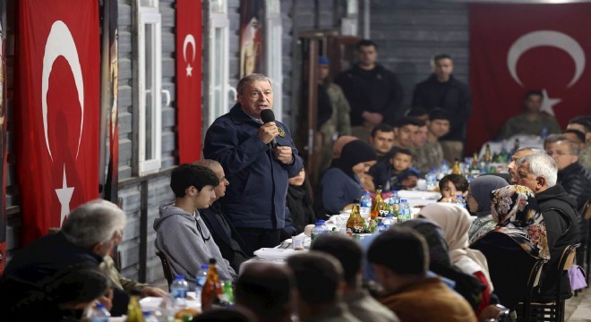 Ramazan ayının ilk iftarını Hatay'da Mehmetçik ile yapan Akar dün de Serinyol'daki 8'inci Komando Tugay Komutanlığı'nda şehit aileleri ve gazilerle iftarda bir araya geldi. İftar sonrası konuşan Akar, "Bu toprakların bizlere vatan olması için gözlerini kırpmadan canlarını feda eden şehitlerimiz tüm başarılarımızdaki aslan payına sahiptir. Onların hatıralarını yaşatmak boynumuzun borcudur" diye konuştu.