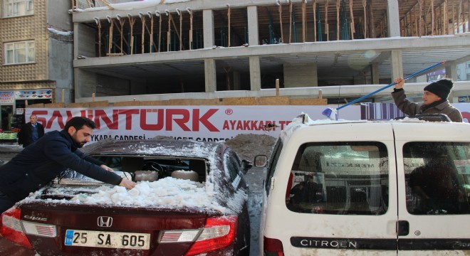 Erzurum'da iki ayrı yerde çatıda biriken kar kütlesi, park halindeki 5 otomobilin üzerine düştü. Otomobiller büyük hasar gördü. Araçlarda kimsenin olmaması can kaybını önledi.