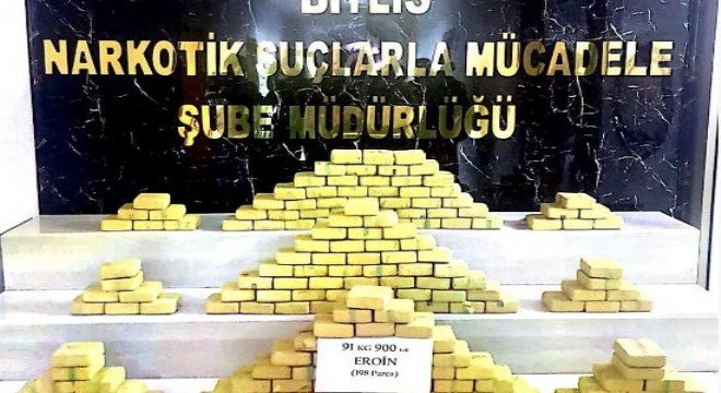 Bitlis Valiliğinden yapılan açıklamada Bitlis Emniyet Müdürlüğü Narkotik Suçlarla Mücadele Şube Müdürlüğü ile Adana İl Emniyet Müdürlüğü Narkotik Suçlarla Mücadele Şube Müdürlüğünün koordineli çalışmaları neticesinde piyasa değeri 41 milyon 400 bin TL olan eroin maddesi ele geçirildiğini bildirdi. Açıklamada, “Bitlis ili üç yol mevkiinde bir yolcu otobüsü durdurulmuş, Narkotik dedektör köpeği Irmak ile otobüste yapılan aramada, otobüste özel olarak imal edilmiş zulada, yaklaşık piyasa değeri 41 milyon 400 bin TL olan, 180 paket halinde, daralı ağırlığı 91 kilo 900 gram eroin maddesi ele geçirilmiştir. Olayla ilgili yakalanan M.Ö., R.G., Z.A. ve L.I. isimli toplam 4 şüpheli uyuşturucu madde ticareti yapmak suçundan gözaltına alınmıştır. İlimiz ve çevresinde suç ve suçlulara karşı yürüttüğümüz kararlı mücadelemiz devam edecektir” denildi.