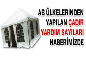 AB ülkelerinden yapılan çadır yardımları ise sayılarla şöyle sıralandı: