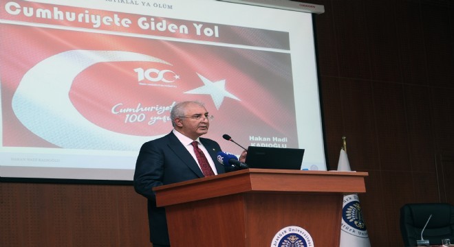 Cumhuriyete Giden Yolda Erzurum başlıklı sunumuyla Prof. Dr. Hakan Hadi Kadıoğlu ise, Atatürk’ün Erzurum Kongresi süresince geçirdiği zamanı, Birinci Dünya Savaşında ordunun durumunu ve kurtuluş çarelerini anlattı. Dinleyicilere Atatürk’ün Gençliğe Hitabesinin bir kısmını okuyan Kadıoğlu, Türk milletinin bağımsızlık yolunda ilerlerken ‘Ya İstiklal Ya Ölüm’ sloganı ile Millî Mücadelesine değindi.