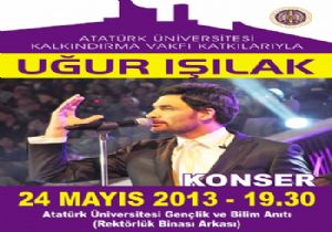 Yıl sonu dolayısıyla gençlik kültür ve sanat etkinliklerinin yoğunluk kazandığı Üniversitede sanatçı Uğur Işılak Konser verecek. Atatürk Üniversitesi Gençlik ve Bilim Anıtı önünde gerçekleşecek konser etkinliği 24 mayısta yapılacak.