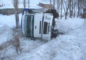 Bir yolcu otobüsü Erzurum yakınlarında buzlanma sebebi ile yoldan çıktı ve devrildi.