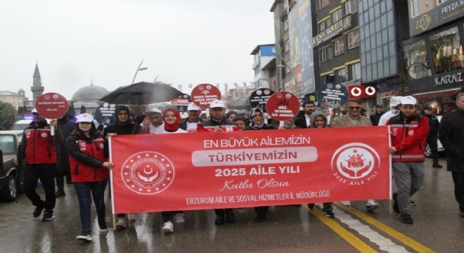 2025 yılının "Aile Yılı" ilan edilmesi dolayısıyla Erzurum’da düzenlenen kortej yürüyüşü, yoğun yağmura rağmen büyük bir coşkuyla gerçekleştirildi.