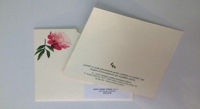 Gönderilen davetiyenin arka kısmında "çelenk ve çiçek göndermek yerine şehitler ve gaziler için bağışta bulunduğunuz için teşekkür ederiz." yazısı yer aldı.
