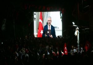 Karanlık gecenin Cumhurbaşkanı Erdoğan'ın sözüyle aydınlandığını ifade eden Yıldırım, şöyle devam etti:"Başkomutanımız Recep Tayyip Erdoğan, 'İnin meydanlara, darbecilere dersini verelim. Milletin ve Hakkın gücünden başka bir güç tanımayız. Kefenimizi giyerek bu yola çıktık. Bu yolda ölmeye hazırız. Milletin iradesini asla darbecilere teslim etmeyiz' dedi. Tankların karşısında dimdik durdunuz. Ruhunu başka ülkelere satan FETÖ'ye dersini verdiniz. Millet iradesi dimdik ayakta. Milletin silahını millete doğrultanı siz dize getirdiniz. Hamdolsun millet olarak büyük mutabakat sağladık. Bütün siyasi hesapları bir tarafa bıraktık farklılıklarımızı aynı potada erittik. Bu güzel birliği inşallah devam ettireceğiz. Birbirimizin hukukuna sahip çıkacağız. Ülkemiz düşmanlarına en güzel cevap; birlik, beraberlik ve kardeşliğimizdir. Bunu özenle koruyacağız. Bir millet olma şuurunu daha da güçlendireceğiz."
