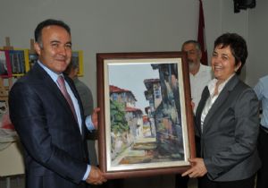 Kent Konseyi Başkanı Semanur Kurt da, birlikte uyum içinde çalıştıklarını dile getirdiği Vali Altıparmak’a teşekkür etti. Kurt Vali Altıparmak’a ziyaret anısına bir Kaleiçi tablosu hediye etti.