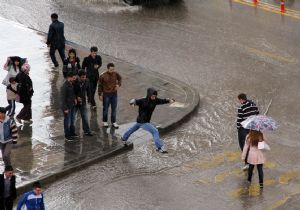 Erzurum’da akşam saatlerinde yaklaşık 10 dakika doluyla karışık yağan sağanak yağmur, etkili oldu. Gök gürültüsünün ardından başlayan doluyla karışık sağanak yağmur yağışı yaklaşık 10 dakika sürdü. Yağmura hazırlıksız yakalanan Erzurumlular, ıslanmamak için koşarak otobüs duraklarına, kapalı mekanlara sığındı. Kısa süreli ama hızlı yağan yağmur nedeniyle cadde ve sokaklarda su birikintileri oluştu.Trafik adeta felç olurken, vatandaşlar ise su birikintilerinden geçmek için zor anlar yaşadı.Yağmura hazırlıksız yakalandıklarını belirten vatandaşlar, “Islandık. Sabah hava iyiydi. Bir anda yağmur bastırınca sırılsıklam olduk” dedi.
