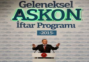 Cumhurbaşkanı Recep Tayyip Erdoğan, Anadolu Aslanları İş Adamları Derneği’nin (ASKON) Haliç Kongre Merkezi’nde düzenlediği iftara katıldı. İftar yemeğine Erdoğan’ın yanı sıra aralarında Ekonomi Bakanı Nihat Zeybekci, Bilim Sanayi ve Teknoloji Bakanı Fikri Işık, İstanbul Valisi Vasip Şahin, ASKON Genel Başkanı Mustafa Koca ve bulunduğu çok sayıda davetli katıldı.