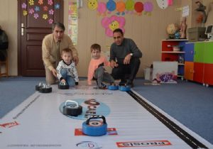 Minyatür curling malzemeleri ile zorlanmadan oynayabilen oyunda çocuklar oldukça eğlenceli zaman geçirdiler.
