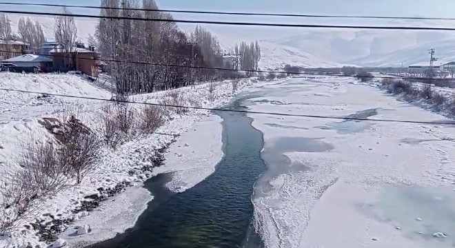 Erzurum’da son günlerde etkili olan dondurucu soğuklar Aras Nehri'nin yüzeyinin buzla kaplanmasına neden oldu.