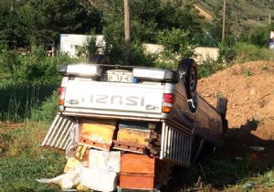 İspir’de sürücüsünün direksiyon başına uyuması sonucu arı yüklü kamyonet devrildi.